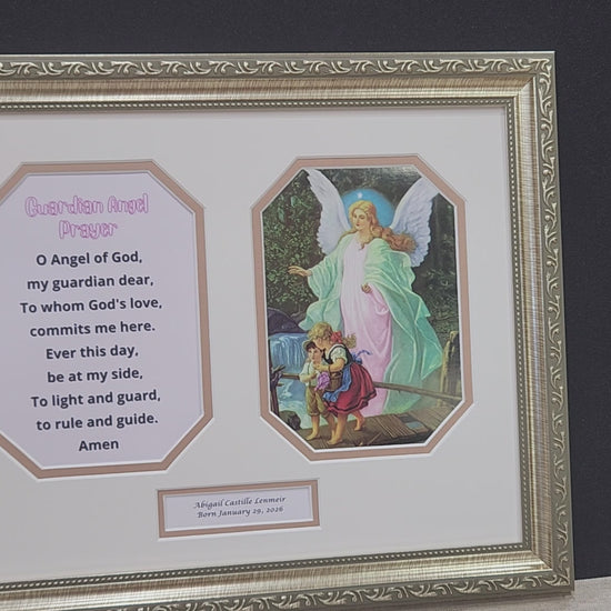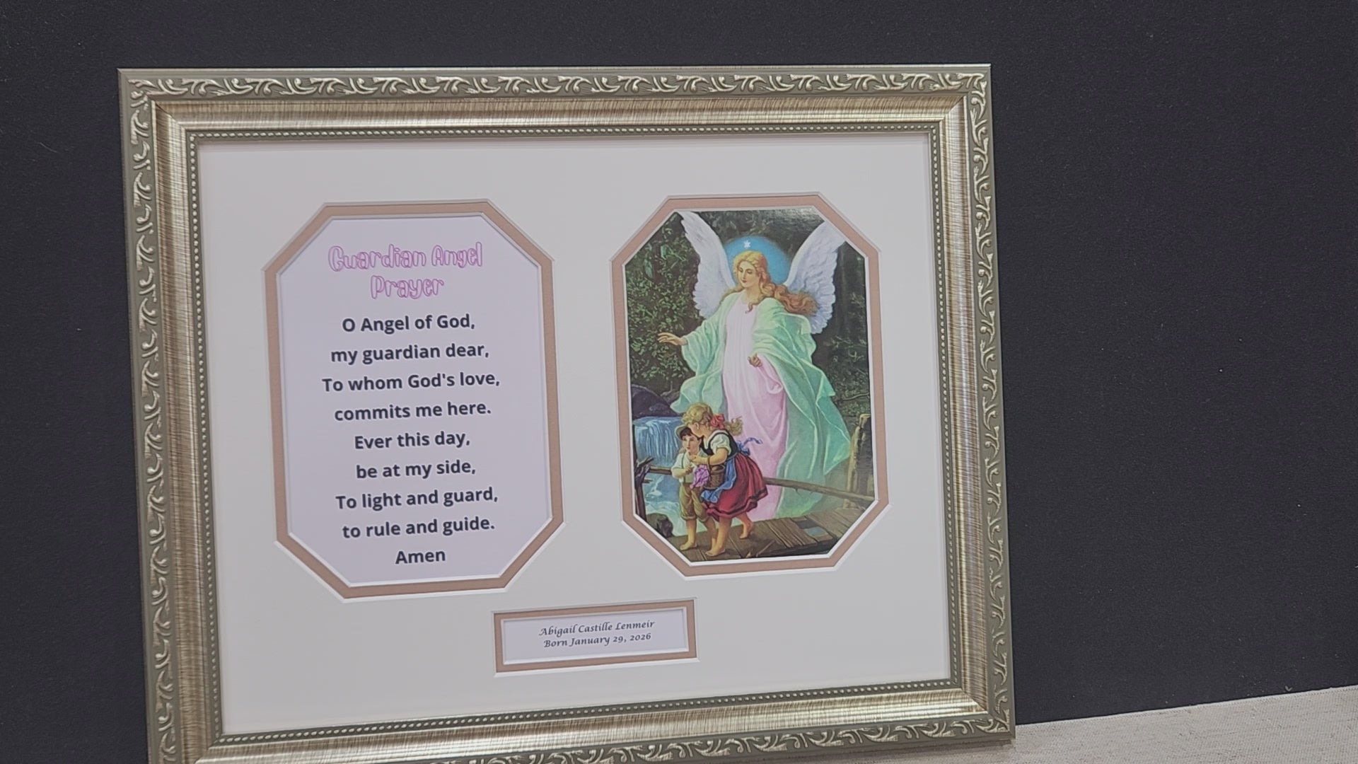 Guardian Angel Picture with Prayer for Girl. This beautiful framed picture features a protective guardian angel design paired with an inspiring prayer, creating a meaningful keepsake for any young girl. Perfect for bedrooms, nurseries, or as a thoughtful gift, it serves as a gentle reminder of protection and spiritual guidance. The supportive message encourages faith and confidence during life's journey. Whether displayed on a wall or shelf, this piece brings comfort and hope to any space while celebrating the special bond between a child and her guardian angel.