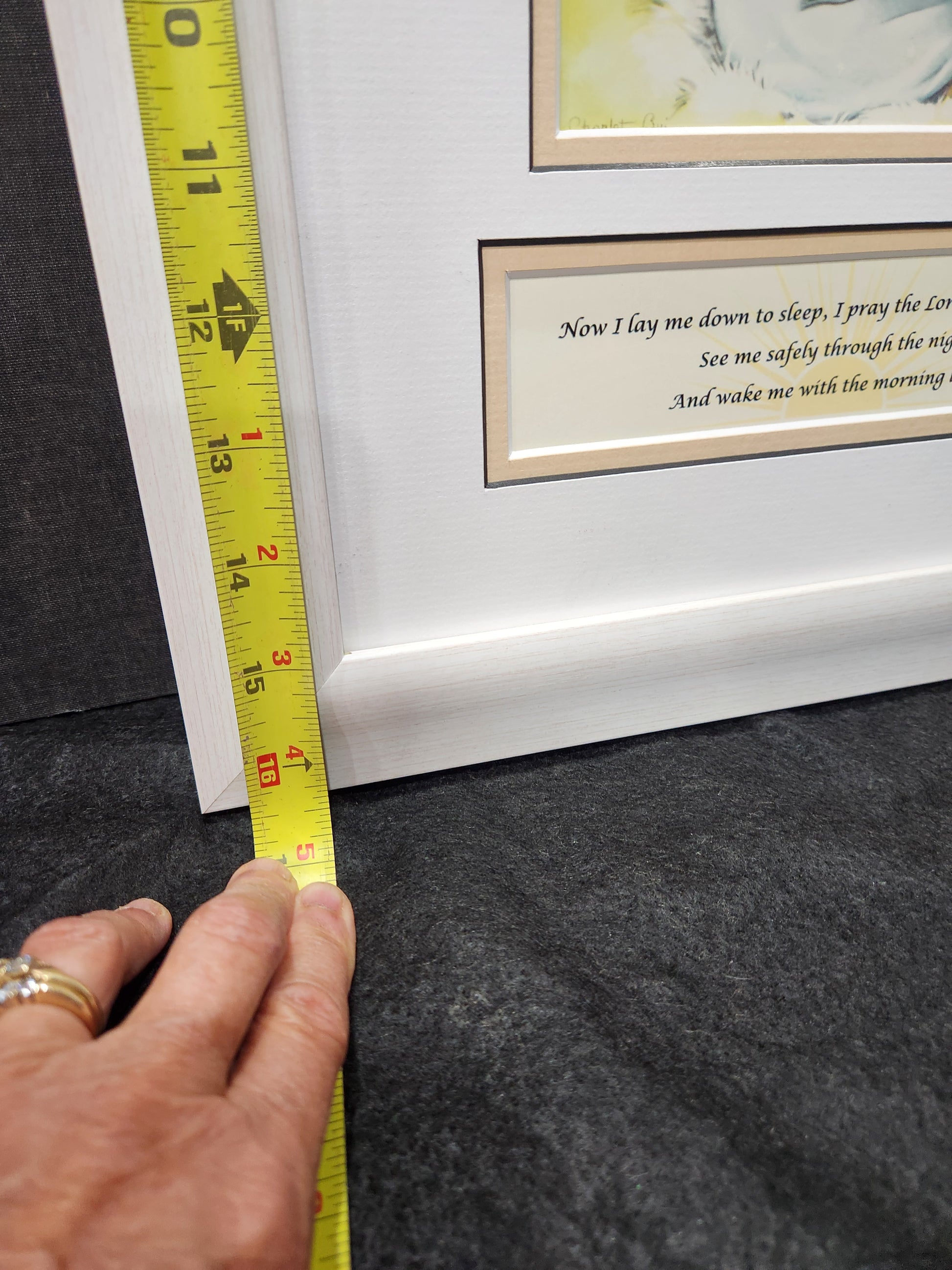 This charming, framed print features the timeless "Now I Lay Me Down to Sleep" prayer alongside an adorable illustration of a little girl kneeling in prayer. Perfect for children's bedrooms or nurseries, it offers a sweet reminder of comfort and faith at bedtime. Its playful design adds warmth and innocence to any space, making it a heartfelt gift for families seeking to inspire nightly prayer and protection. Size measures 13" X 16" from the outermost edges of the frame.